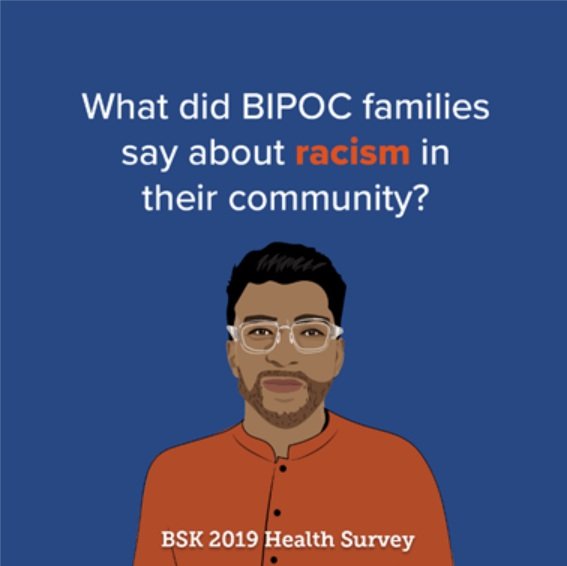 Families face racism to varying degrees in every facet of life, and racism is under-reported. Racism impacts the way families use services and engage with educational systems. Eight out of ten communities thought the BSK Health Survey findings for their community under-reported experiences of racism. Data about racism should be gathered in different ways to represent the full range of experiences with racism.